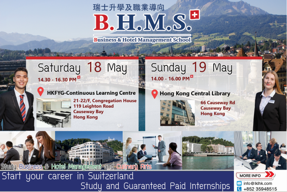 香港瑞士升學及職業導向講座 五月18日,19日下午