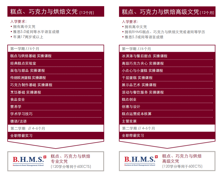 糕点、巧克力与烘焙文凭/高级文凭课程