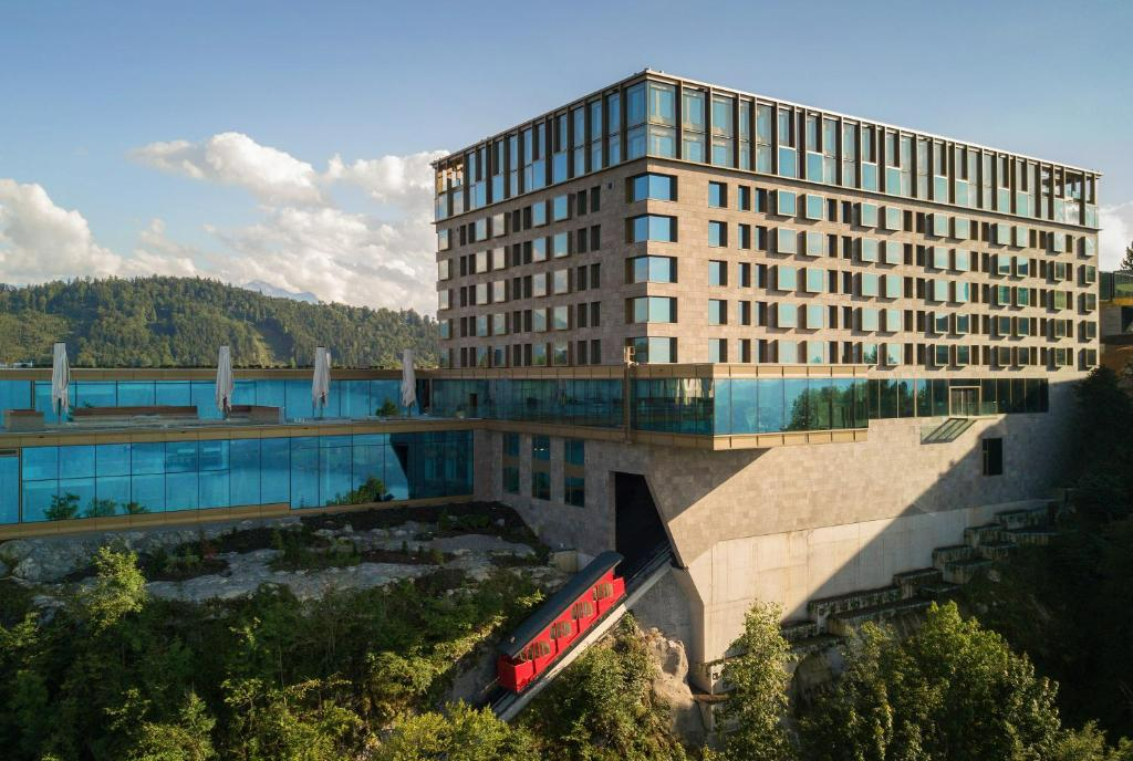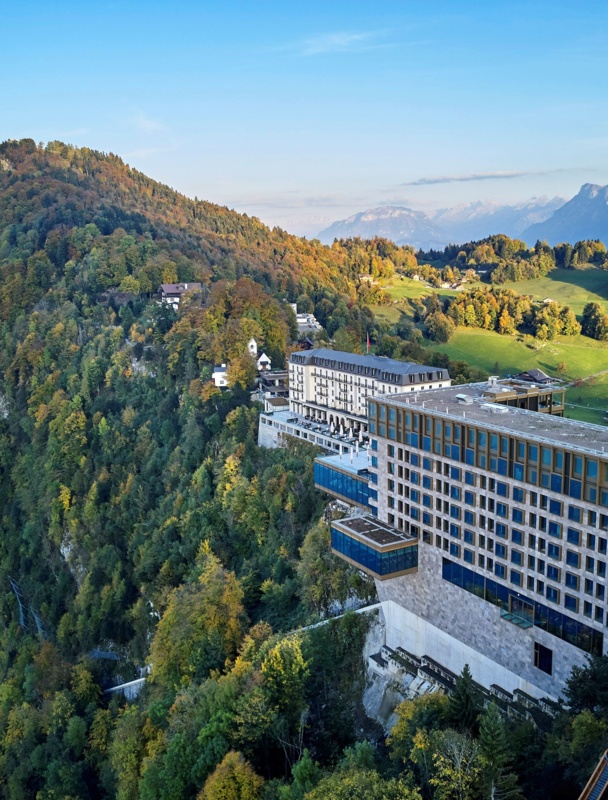 如今的布尔根施托克酒店及度假村以其革命性的设计、令人惊叹的景观和卓越的休闲设施著称。在这里,来自世界各地的客人,可以尽情享受视觉盛宴,感受卢塞恩湖和阿尔卑斯山的壮丽景色。不仅如此,酒店中位于卢塞恩湖上方的阿尔卑斯山水疗中心,创新的钻石圆顶网球场和经典的 9 洞布尔根施托克高尔夫球场等休闲设施,更是让客人们流连忘返。