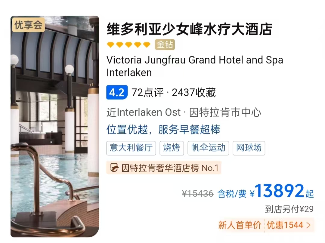 所以,维多利亚少女峰大酒店是一家具有百年历史的酒店,在这里您可以感受到它的时代印记,而其现代化的装饰与传统意外地融合,给人以惊喜之感。而且,这里四周阿尔卑斯山环绕,少女峰美景尽收眼底,令人惬意非常。可以说,维多利亚少女峰大酒店是大家到因特拉肯旅游的绝佳休息地。