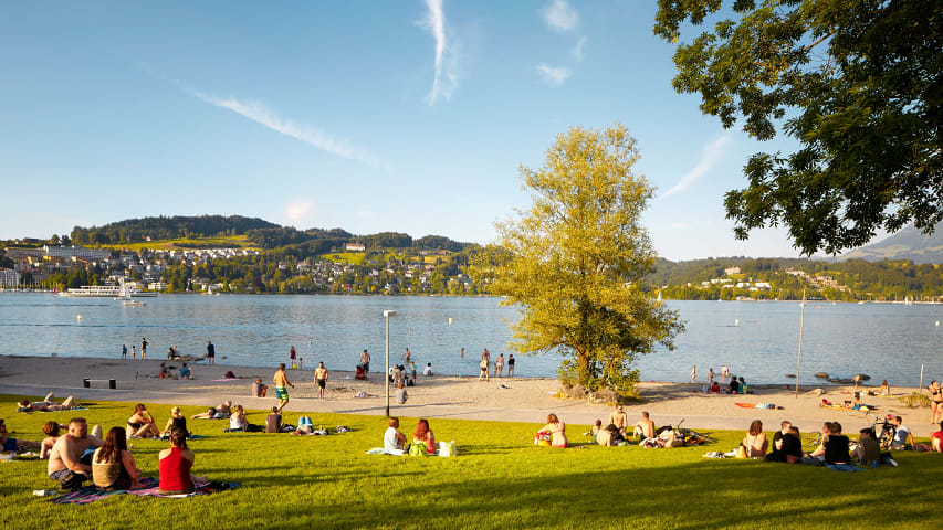 这里有大片的绿草地,同学们可以席地而坐,也可以铺个毯子,这样会更舒服些;又或者在湖边的长椅处入座,不管在此阅读还是写作都很合适。学习之余还可以边活动身体,边近距离感受卢塞恩湖面波光粼粼的模样。