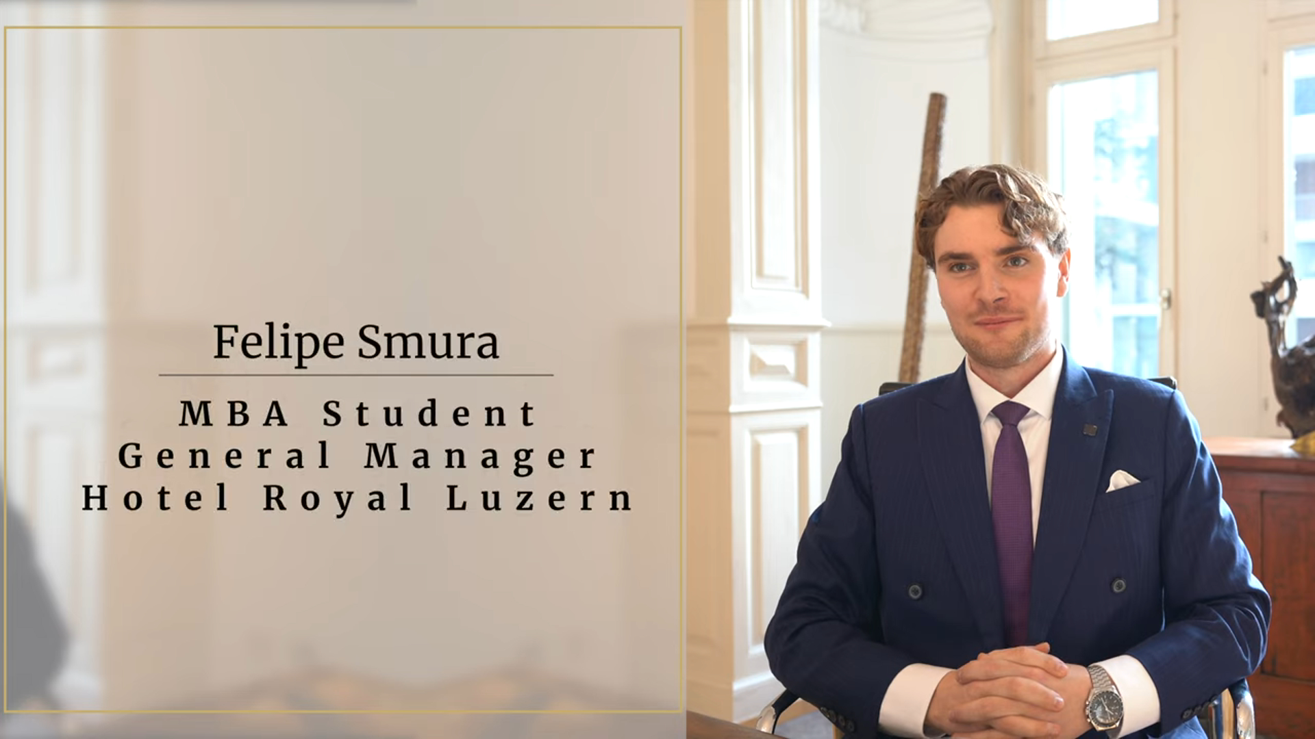 本期学生采访,我们很高兴邀请到了在BHMS攻读工商管理硕士的学生—— Felipe Smura。令人惊喜的是,他还有另一层身份,卢塞恩 Hotel Royal 的总经理。