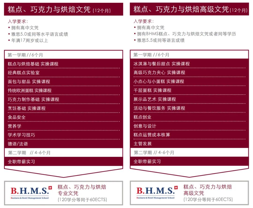 大一和大二分为 “西方美食艺术” 和 “糕点、巧克力与烘焙” 两个专业方向;大三则合并为“西方美食艺术”专业,毕业后颁发相应的学士学位证。