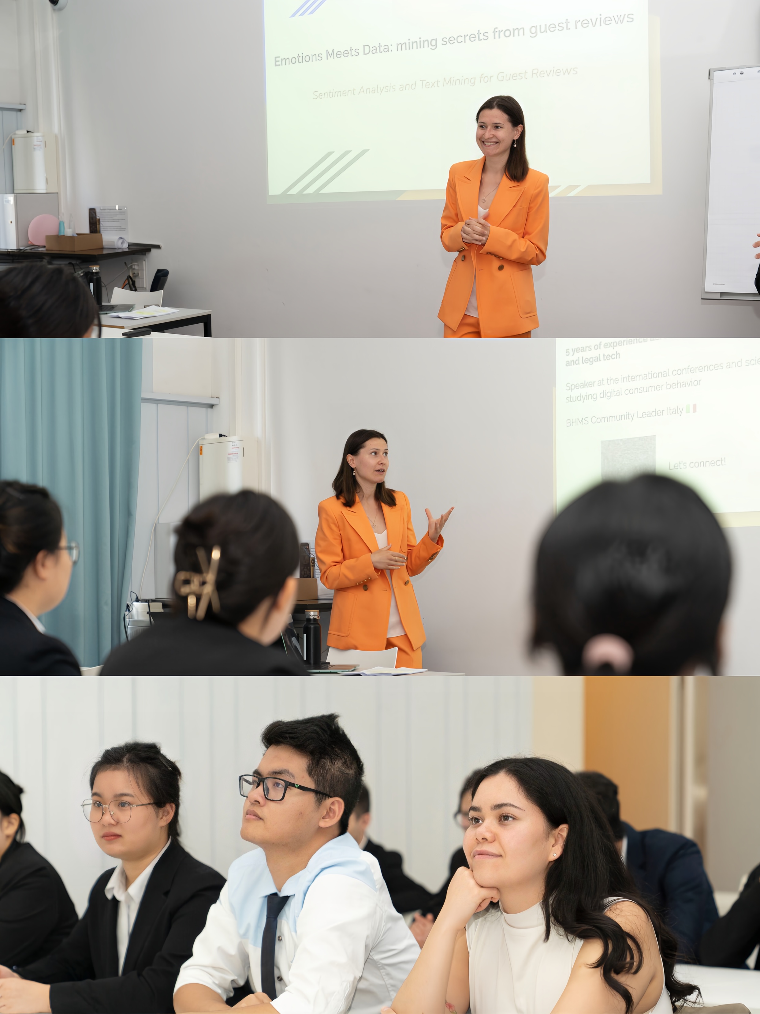 她这次为同学们带来了一场关于情感分析与数据挖掘的精彩大师课,揭示了企业如何从客评中提取有价值的见解与反馈。同学们从中深入探讨了人工智能与数据解读如何构建更创新的酒店行业策略。课程结束后,大家在交流酒会上继续畅谈,延续思想碰撞。
