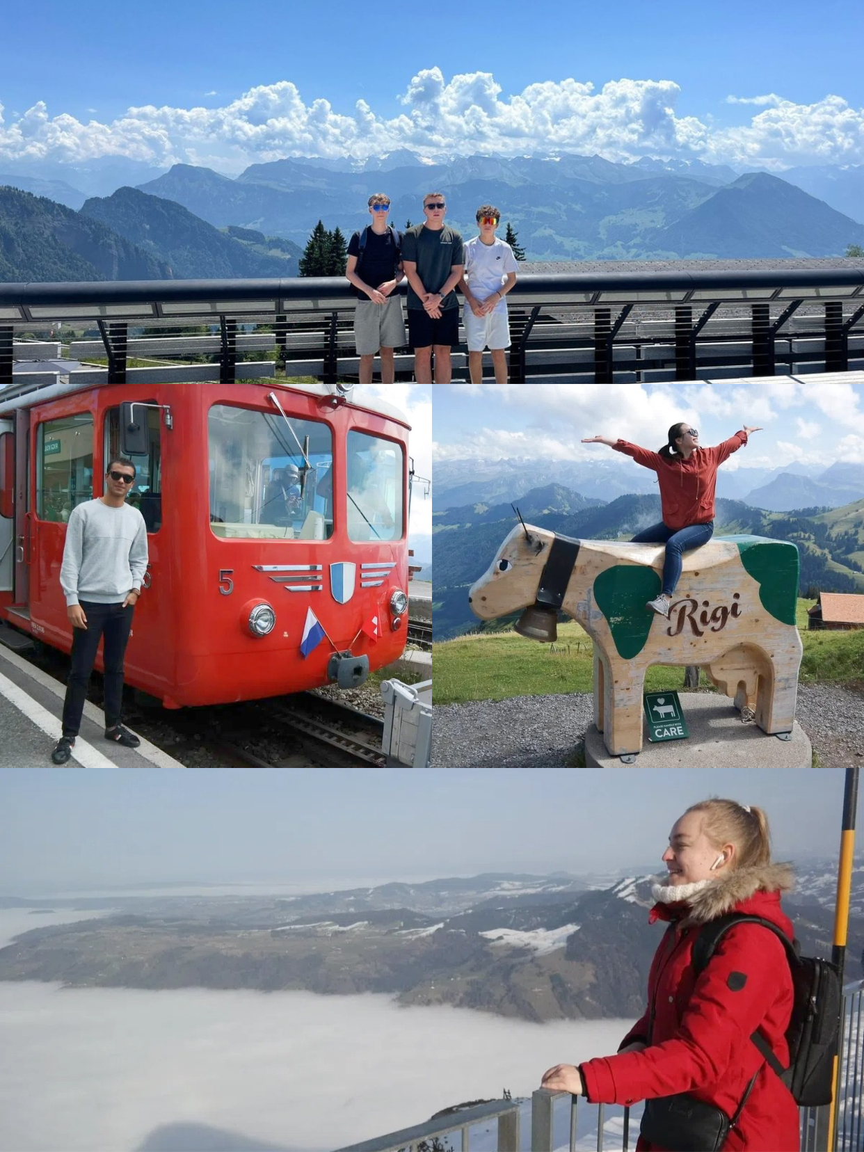 乘坐特色的齿轨火车登顶瑞吉山,天气晴朗时,连绵起伏的阿尔卑斯山脉尽收眼底,湛蓝的天空与洁白的云朵交织出浪漫辽阔的意境;若遇阴天,山间云雾缭绕,群峰在朦胧中若隐若现,又仿佛置身于纯白静谧的仙境之中。