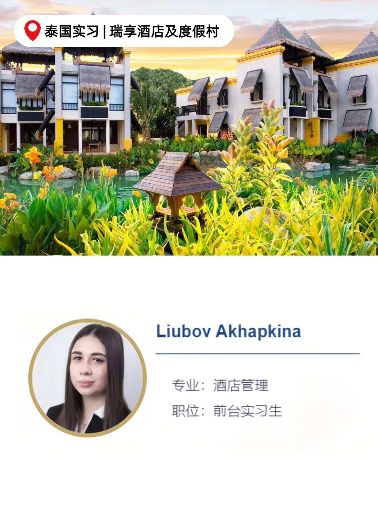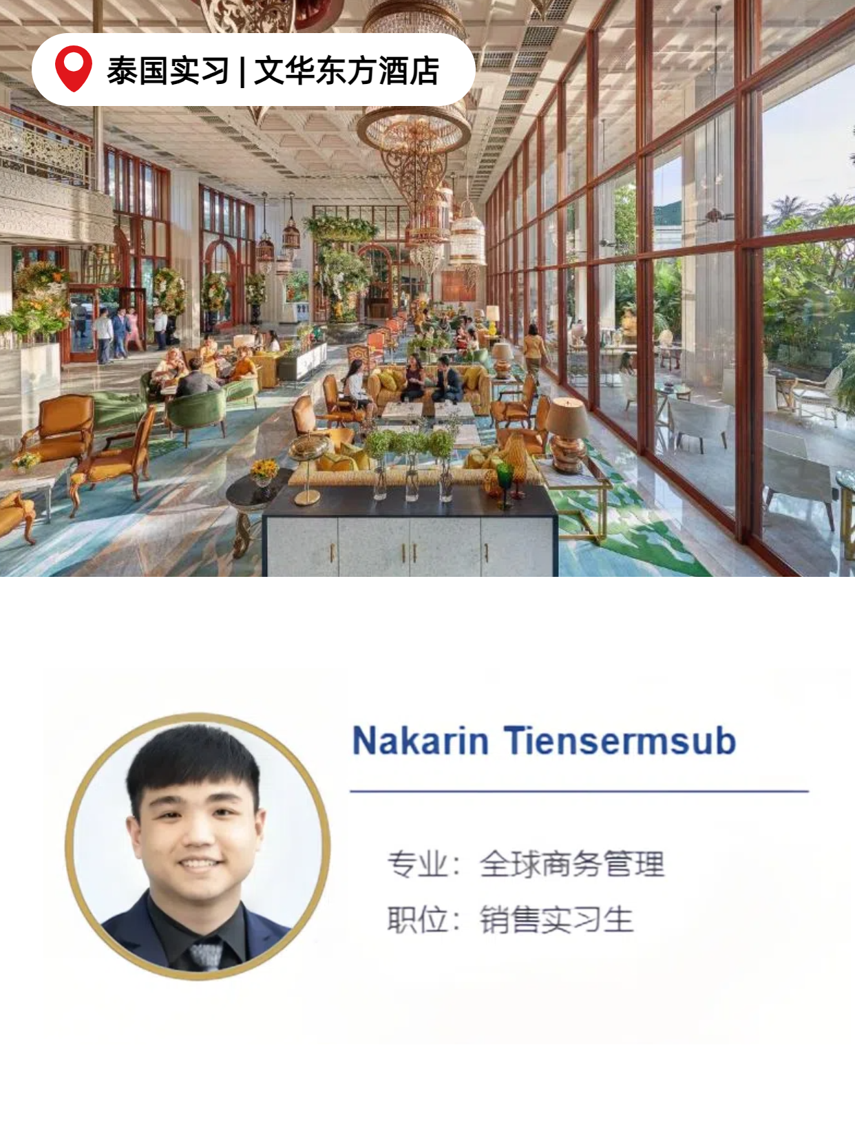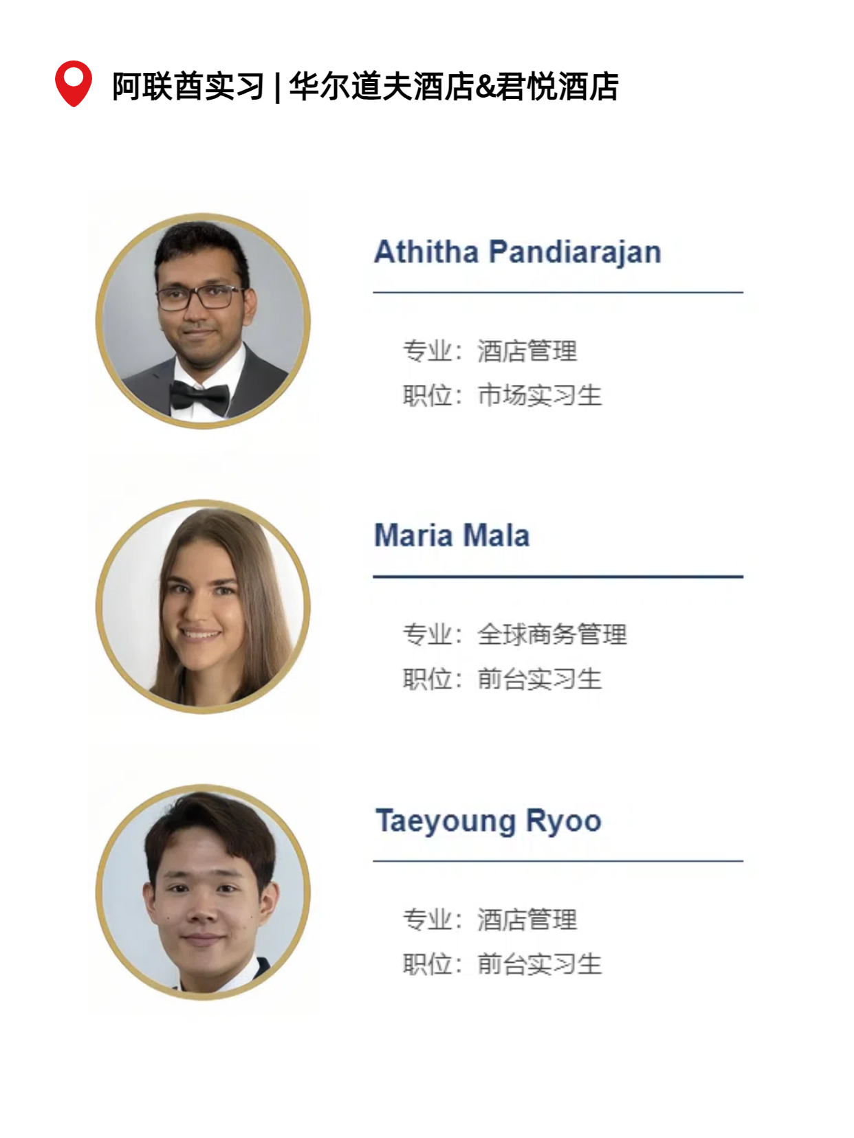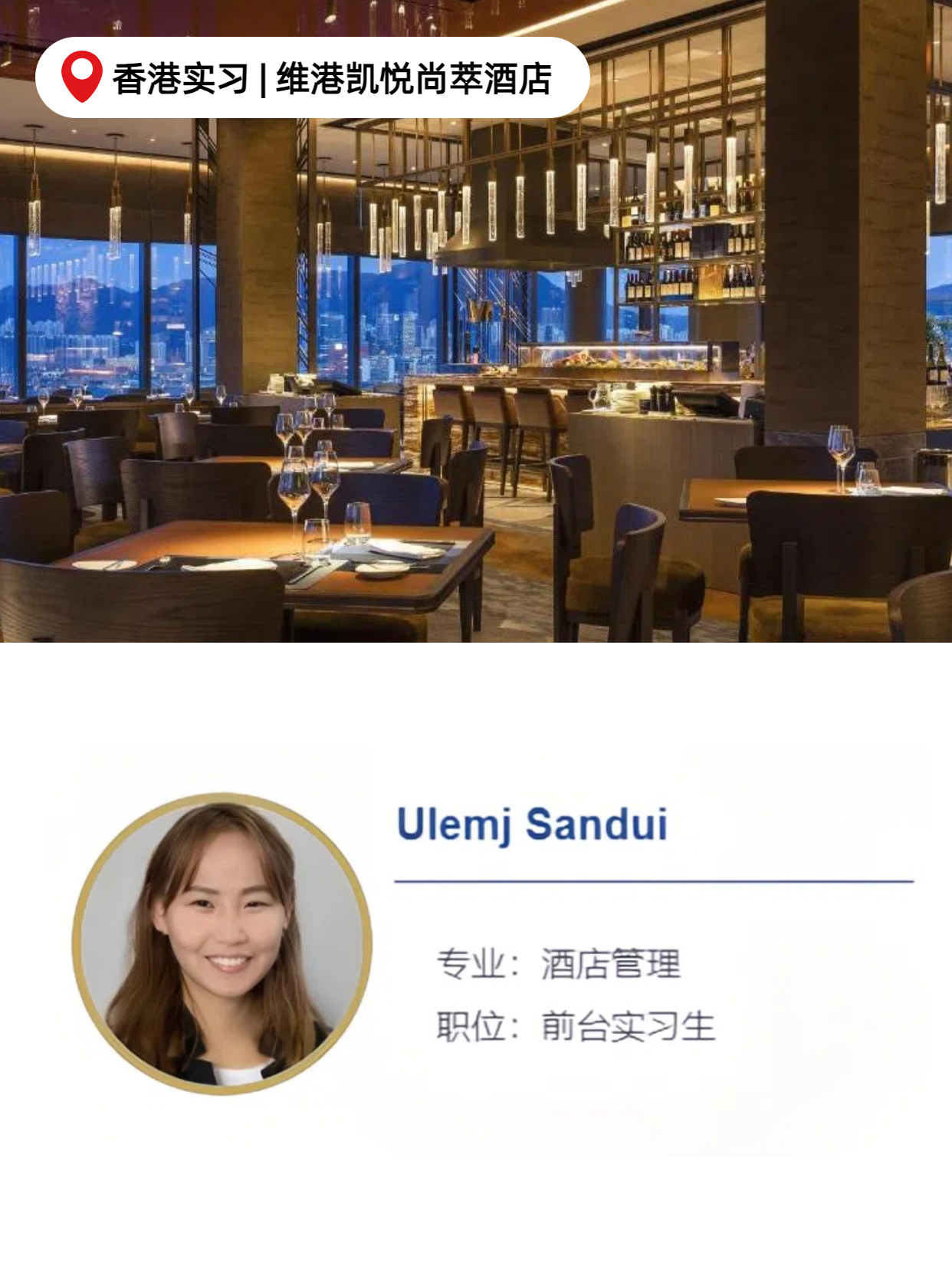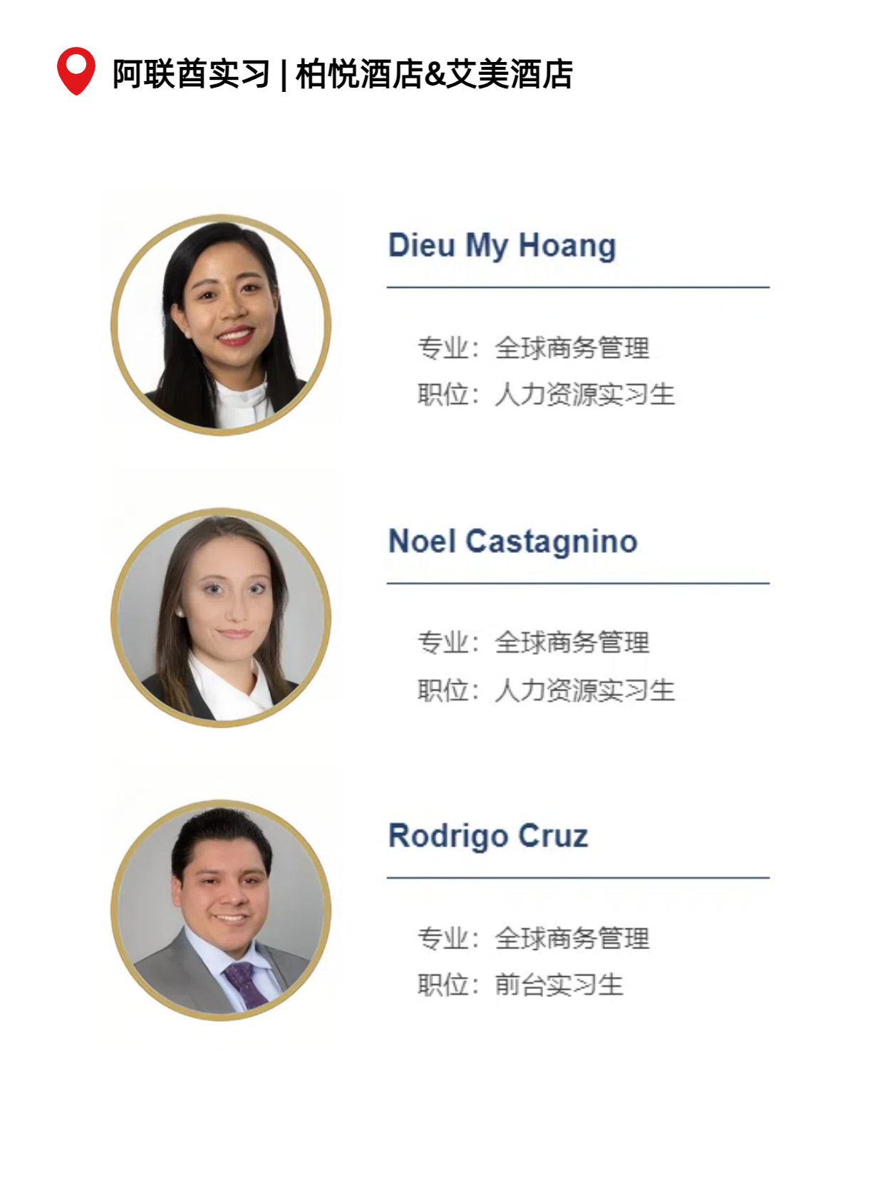 BHMS卢塞恩酒店管理商学院的学生,不仅在瑞士深耕酒店管理、商务管理与西方美食艺术等专业知识,更投身于全球各地的顶级企业进行一线实践。我们从美国、阿联酋、加勒比海、泰国及香港的实习中精选了一批案例,共同探索他们迈向全球职业生涯的卓越道路。
