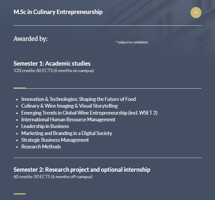 2026年,BHMS卢塞恩酒店管理商学院硕士项目将更加丰富多元。除了上周已发布的国际旅游管理硕士项目外,我们还将全新推出餐饮创业硕士项目(MSc in Culinary Entrepreneurship)。
