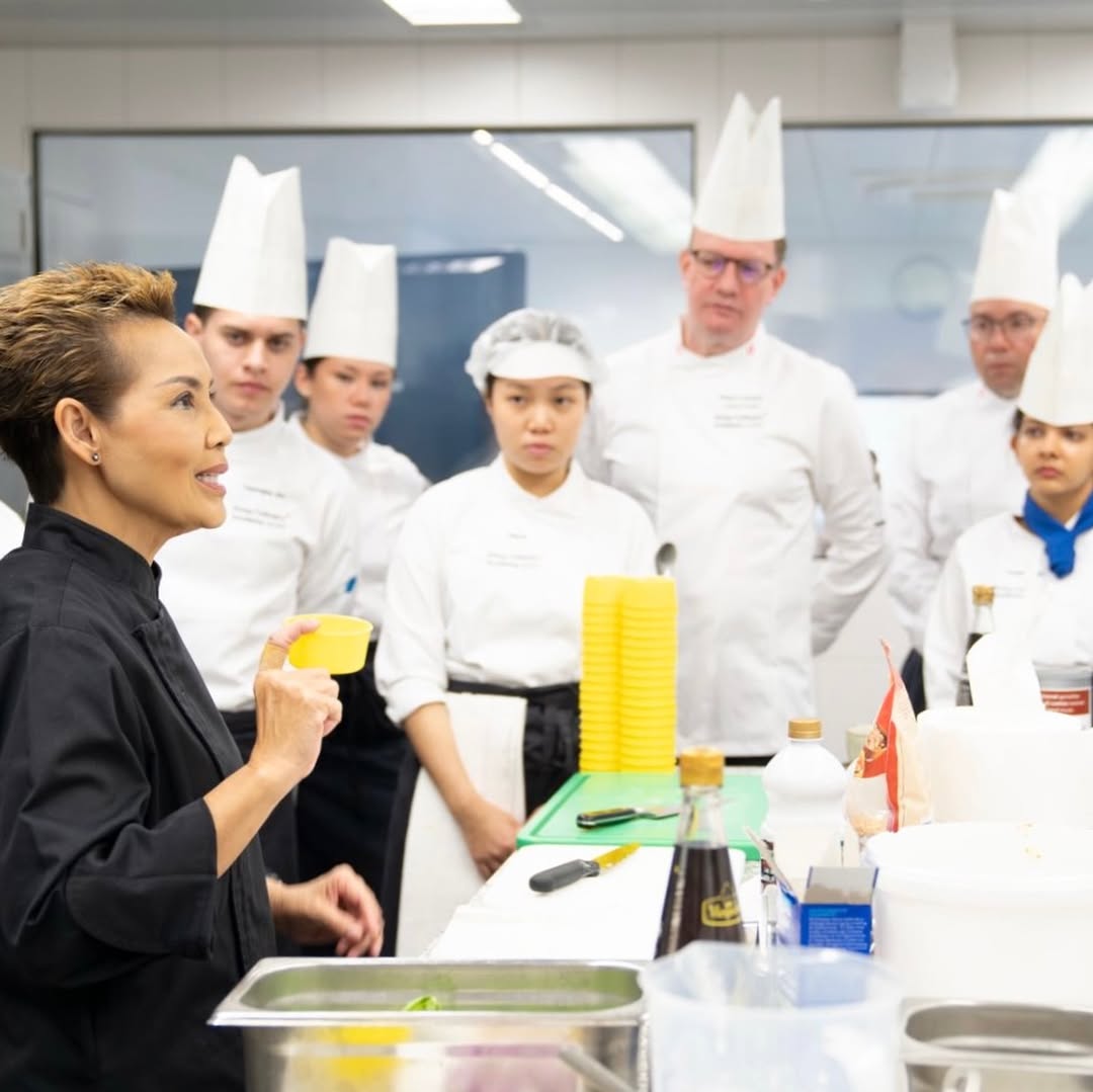 近日,我们很高兴邀请到泰国多位杰出主厨——𝐂𝐡𝐞𝐟 𝐏𝐨𝐦、𝐂𝐡𝐞𝐟 𝐉𝐚𝐡和𝐂𝐡𝐞𝐟 𝐃𝐚𝐮𝐧𝐠𝐤𝐚𝐦𝐨𝐥 𝐖𝐨𝐧𝐠𝐲𝐚𝐫𝐚来到BHMS,共同主持最新一期的“主厨餐桌”活动。他们将泰式料理的精湛技艺、精准火候与纯正风味,带入了我们的课堂。