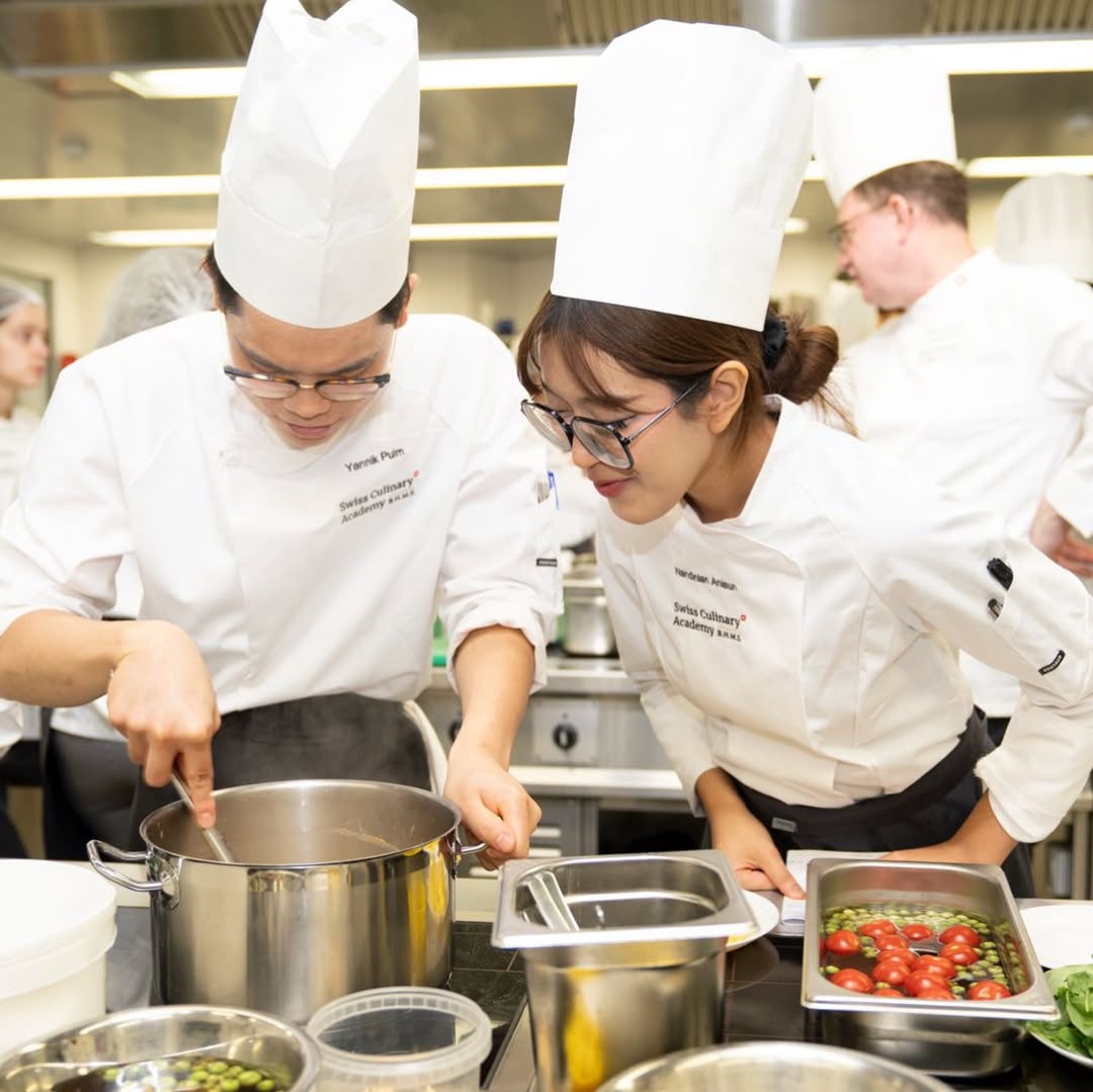 精英导师的亲身指导:学生们不仅是观摩学习,更是与国际知名主厨并肩协作,在实操中汲取精湛技艺,并获得即时的专业反馈。