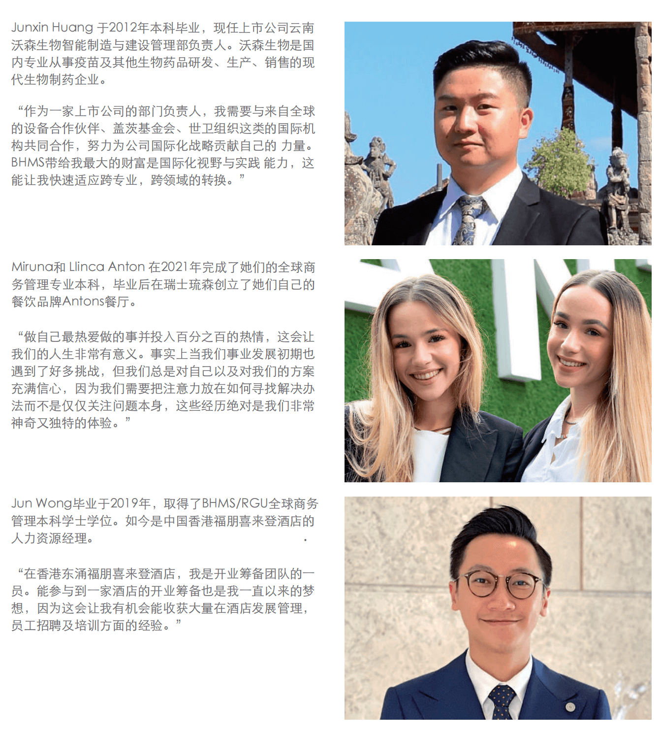 从商业、泛酒店业到美食艺术领域的领导岗位,我们的校友们在各自职业生涯中都产生着重大影响。我们的校友网络遍布全球,彰显了我校的全球影响力。