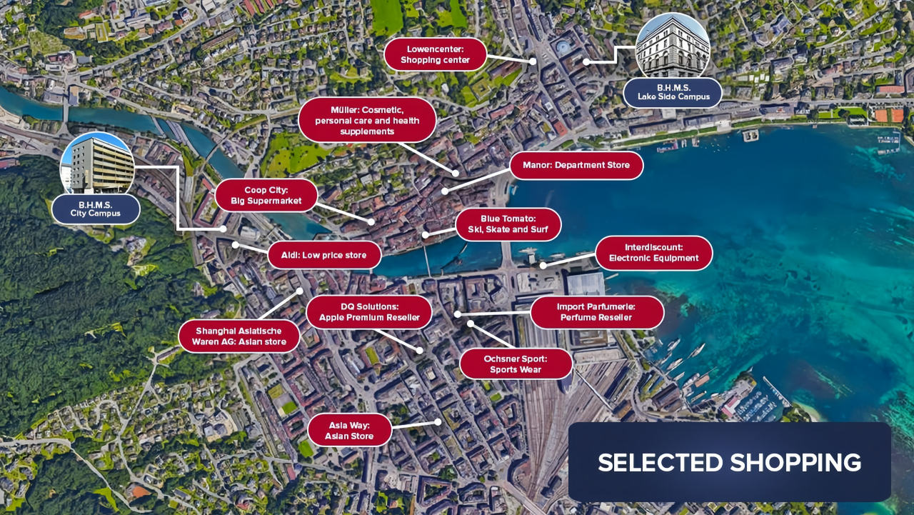 众所周知,我们BHMS地处卢塞恩市中心,生活便利。那么,便利从何体现呢?从学校步行几分钟就能到充满生活用品的购物中心就是啦!这期的学校周边,小编向大家推荐一些BHMS学生常去的购物场所,让大家一同感受生活便利的满满幸福感。