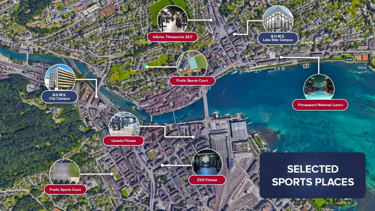 EVO Fitness,紧邻卢塞恩火车总站,是一个设计成阁楼风格的健身俱乐部。它拥有500平方米的训练区,在这里BHMS的学生可以找到锻炼所需的一切:有氧区、动感区、功能训练区和游乐区。感兴趣的同学们可以参加免费的入门课程。