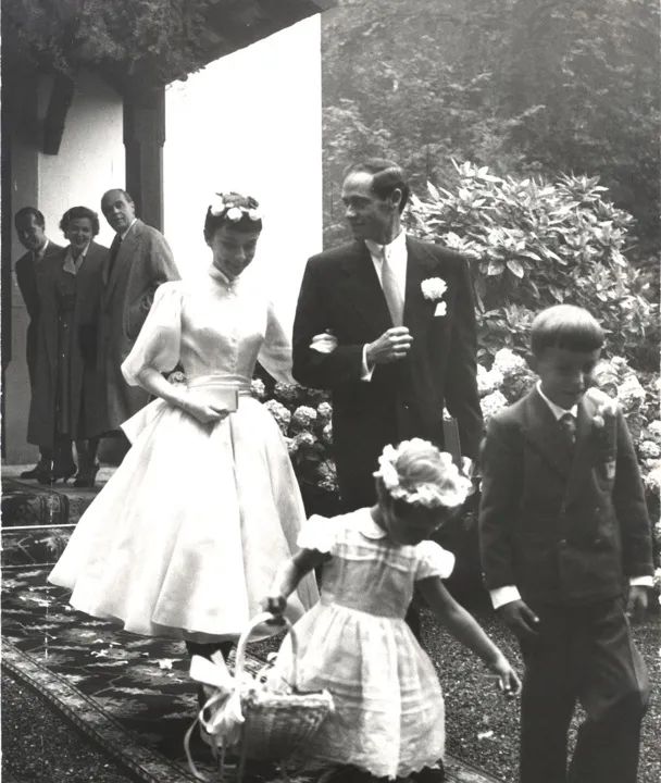 1954年,赫本与费勒在卢塞恩著名的布尔根施托克酒店的教堂举行了婚礼,赫本身着白色婚纱,头戴玫瑰花环,如天仙下凡般美丽脱俗。