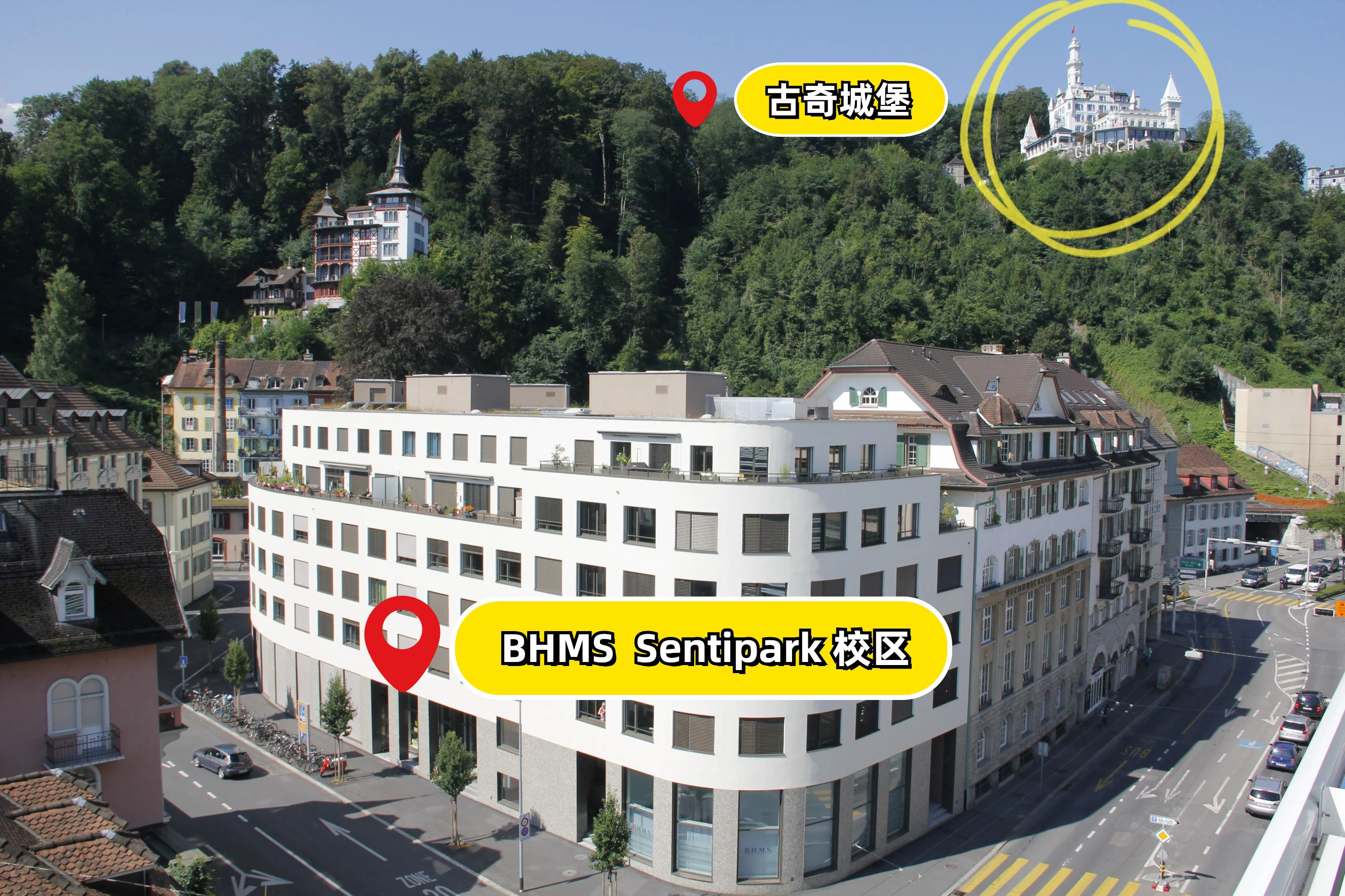 相信有关注我们社交媒体的朋友对这张照片不陌生吧?在我们的Sentipark校区的正上方,有一座醒目的白色城堡,这是卢塞恩的地标之一——古奇城堡 (Château Gütsch)。